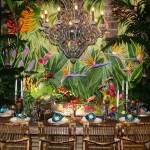 - Our floral designer tied in flowers on the table with the flowers in the mural